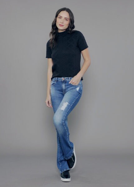 Calça Feminina Boot Cut Cintura Alta Barra Larga 30417