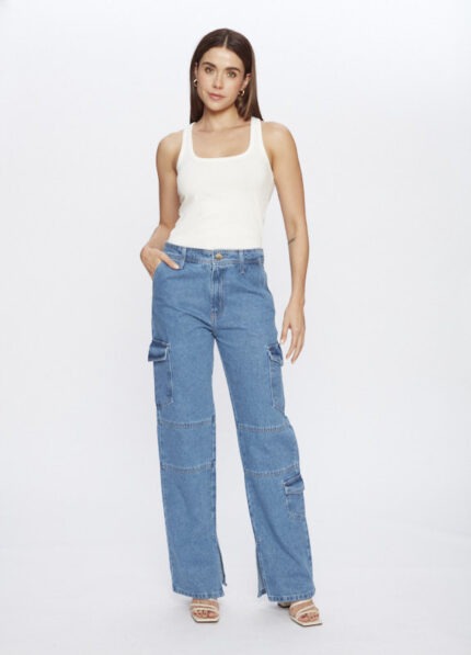 Calça Feminina Wide Leg Cintura Média Cargo 30448