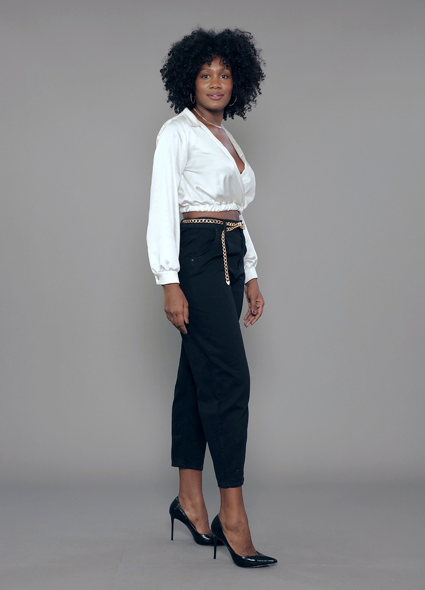 BL.163.0003 Blusa Modal Feminina Cropped Manga Longa Transpassada Com Elastico Cintura em Cetim Misto