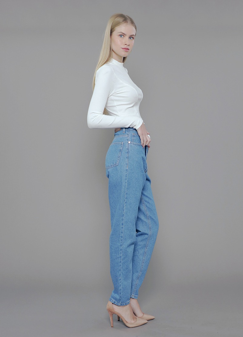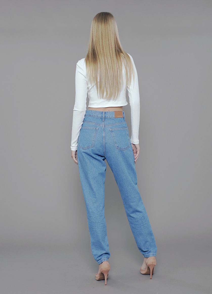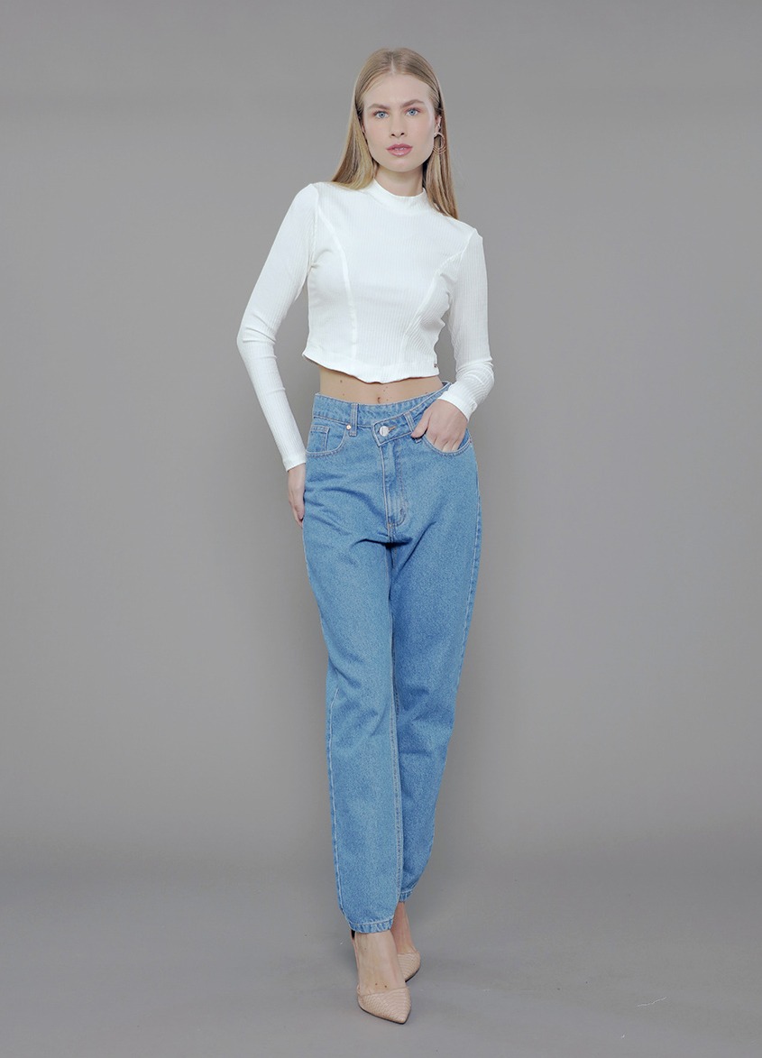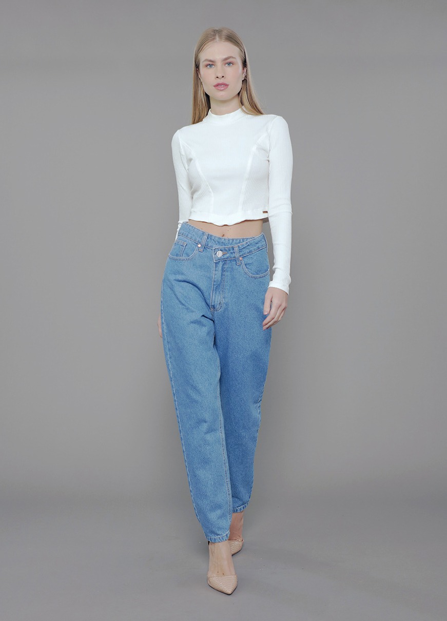 CL.170.0120 Calça Jeanswear Feminina Mom Cintura Alta Básica Com Cós Deslocado em Jeans 100% Algodão Estonado*Tm:34 ao 48