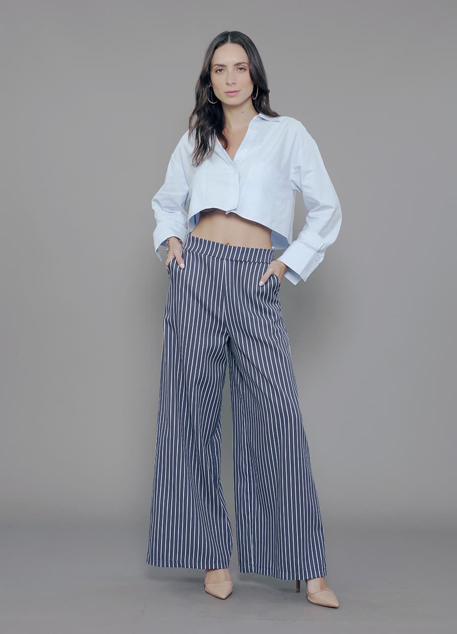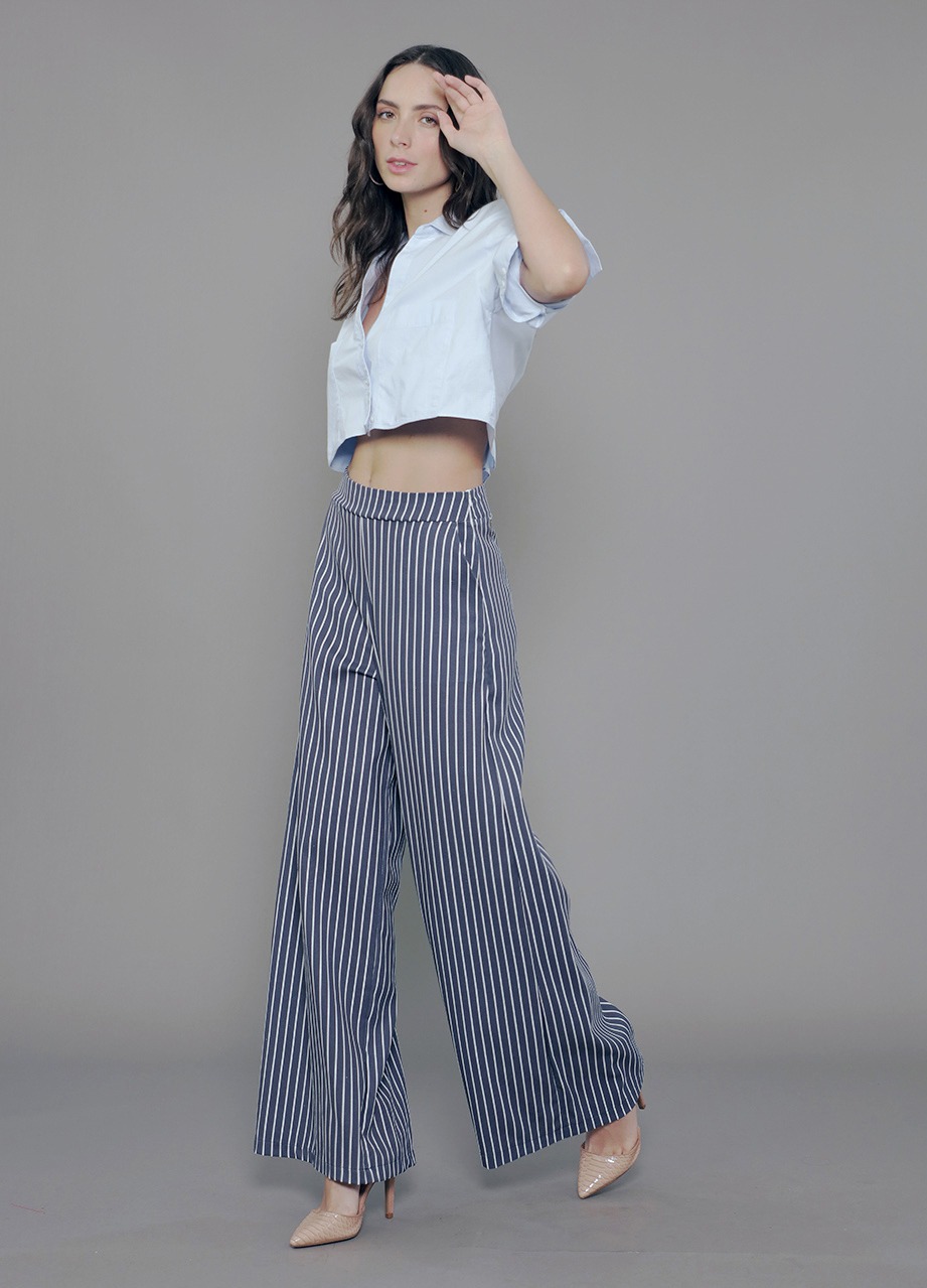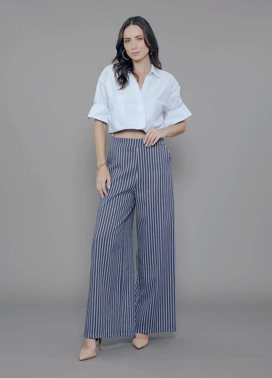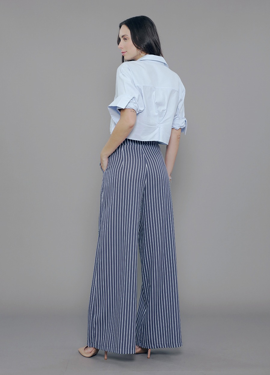 CL.163.0017 Calça Modal Feminina Pantalona Cintura Alta em Linho Misto