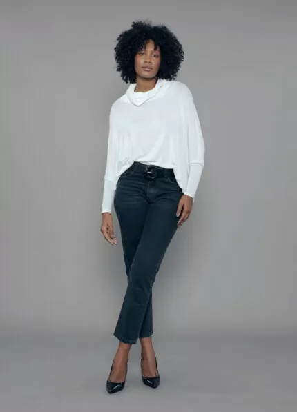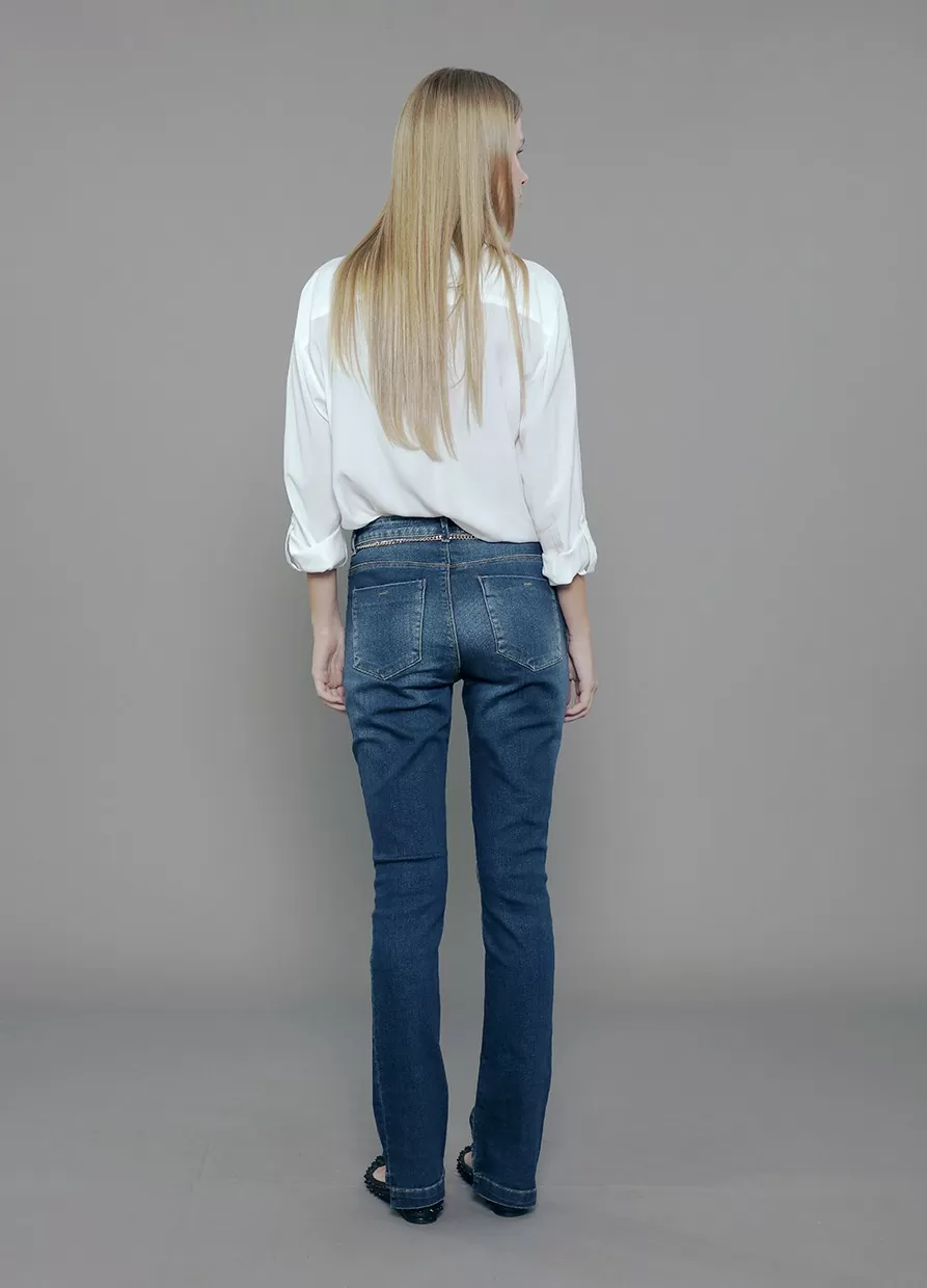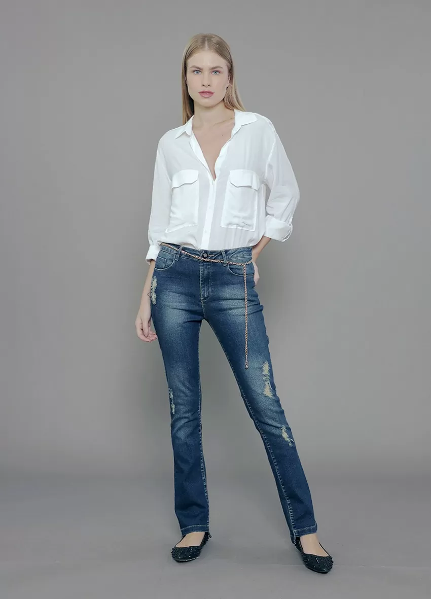 CL.163.0111 Calça Jeanswear Feminina Shoe Cut Cintura Média Básica Com Barra assimetrica em Jeans Com Elastano Destroyed com puidos*Tm:34 ao 48