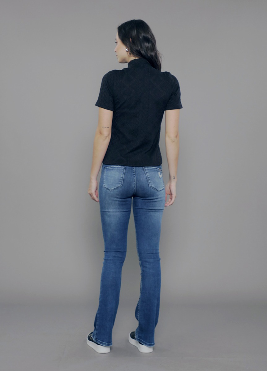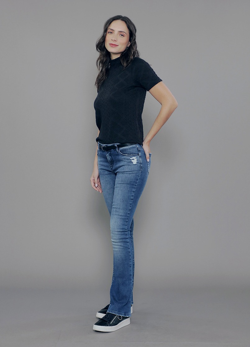 CL.170.0104 Calça Jeanswear Feminina Shoe Cut Cintura Média Básica em Jeans Com Elastano Estonado com Puídos*Tm:34 ao 48