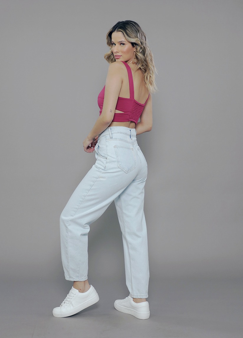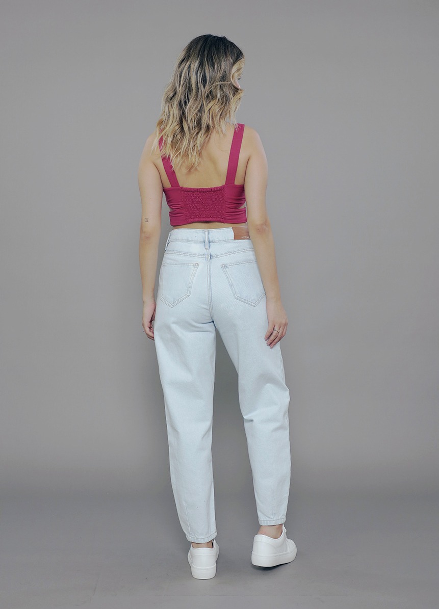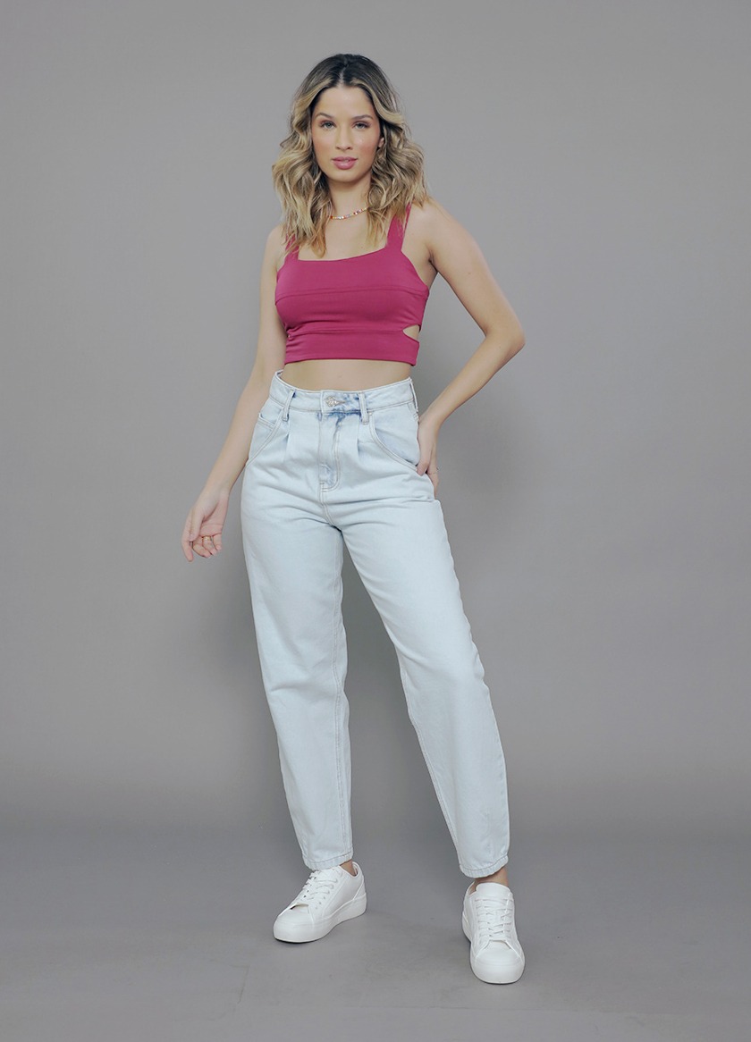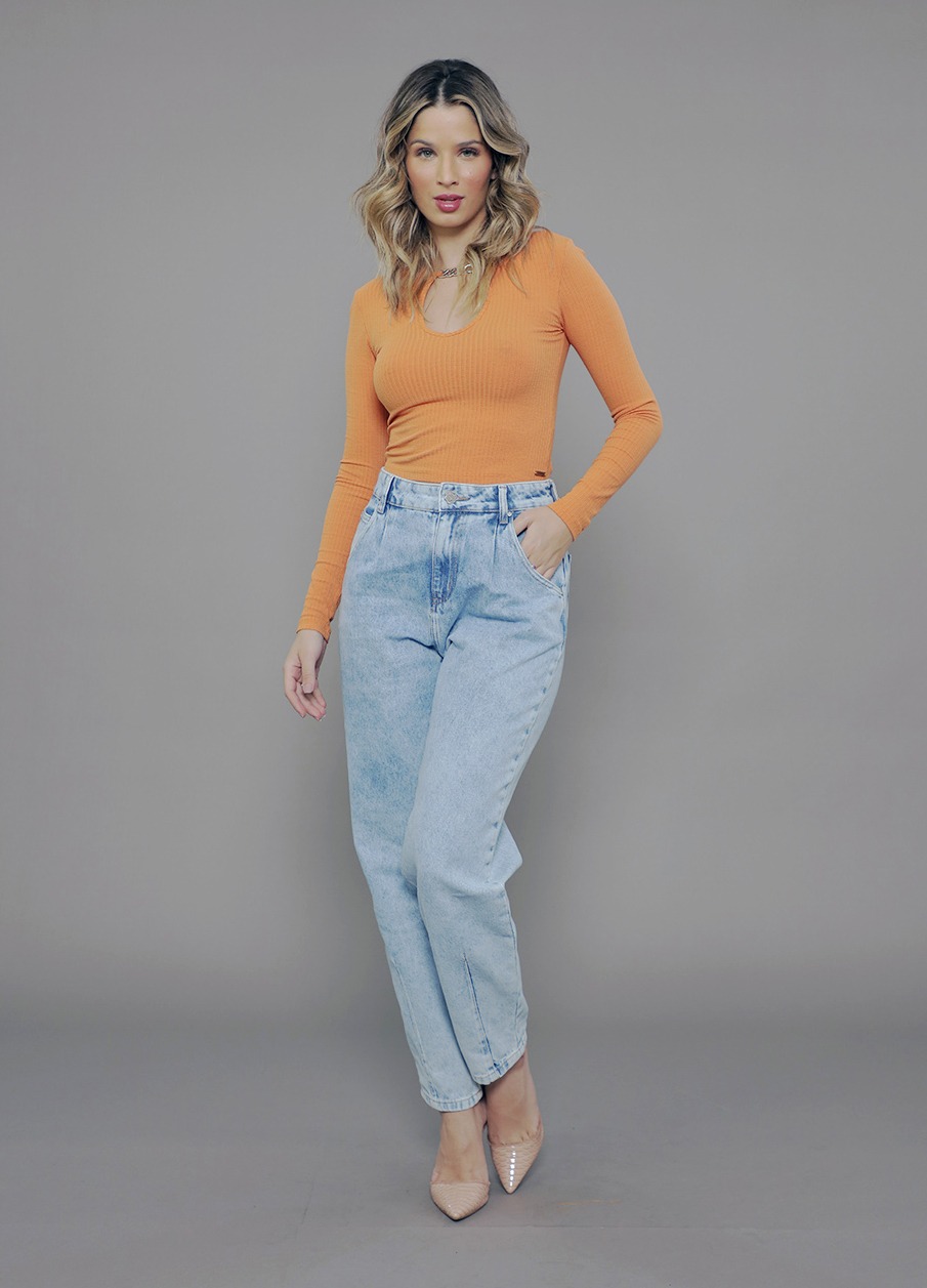 CL.170.0092 Calça Jeanswear Feminina Slouchy Cintura Alta Básica Com Pregas em Jeans 100% Algodão Estonado*Tm:34 ao 48