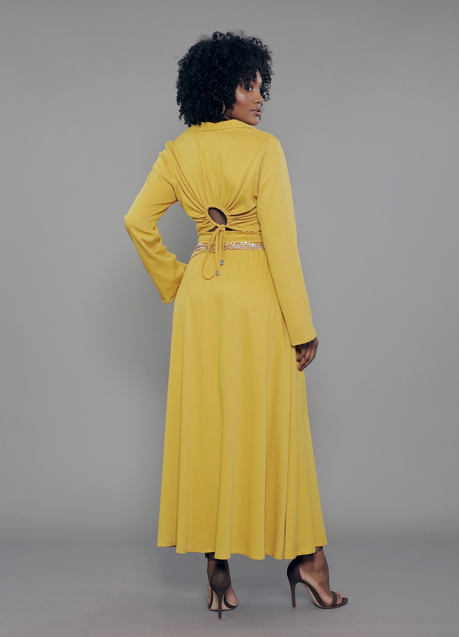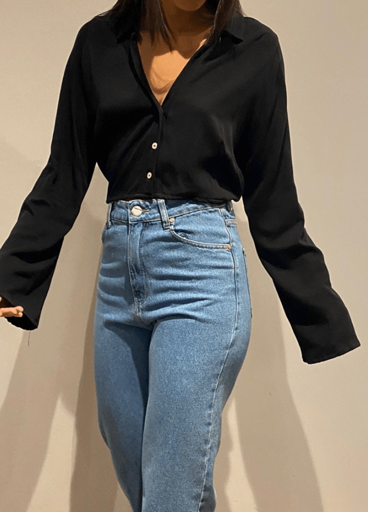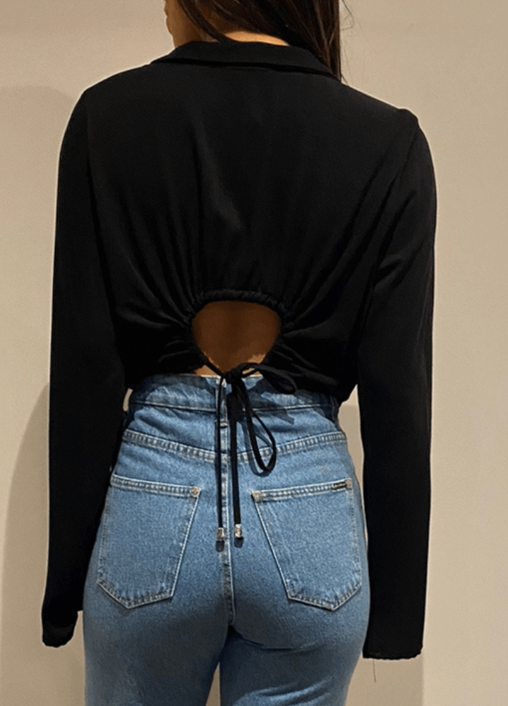 CM.163.0015 Camisa Modal Feminina Cropped Manga Longa Tulipa Decote V Com Cordão para Ajuste nas Costas em Viscose mista