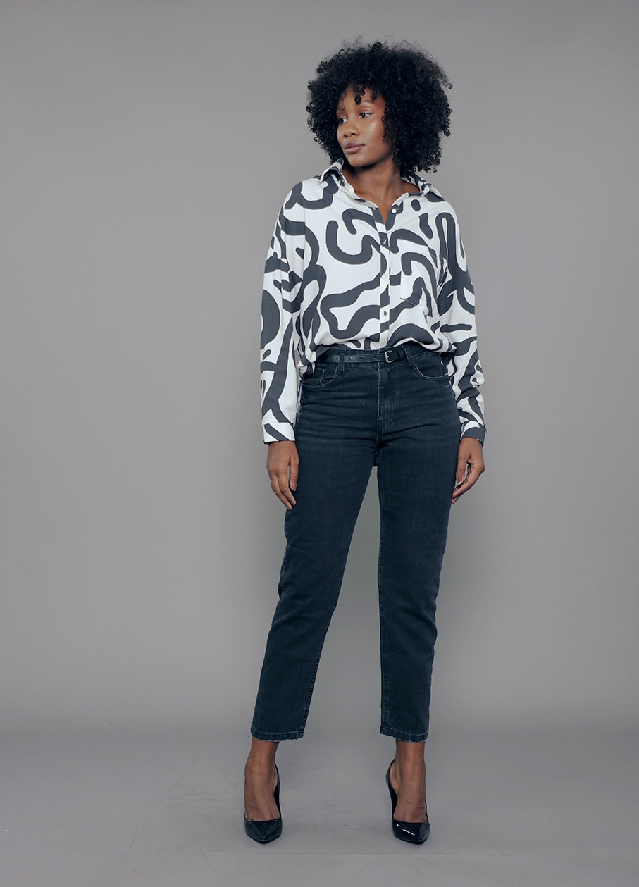 CM.163.0014 Camisa Modal Feminina Oversize Manga Longa em Granite Misto