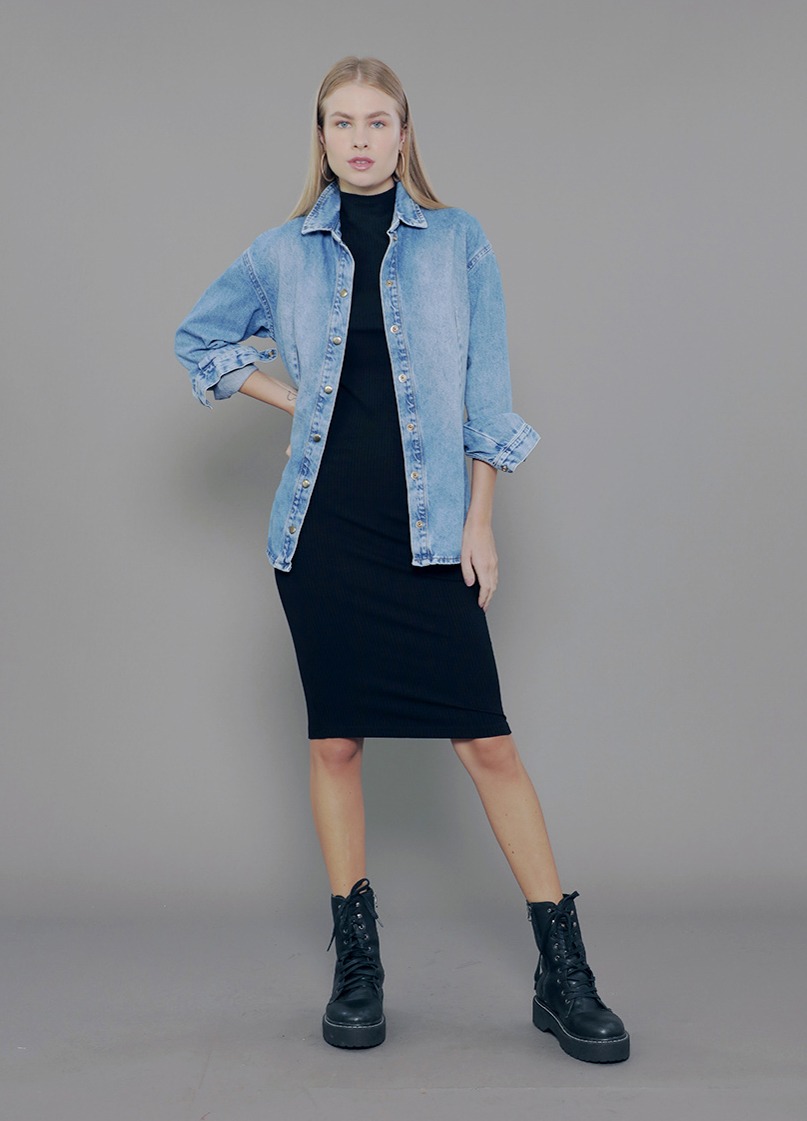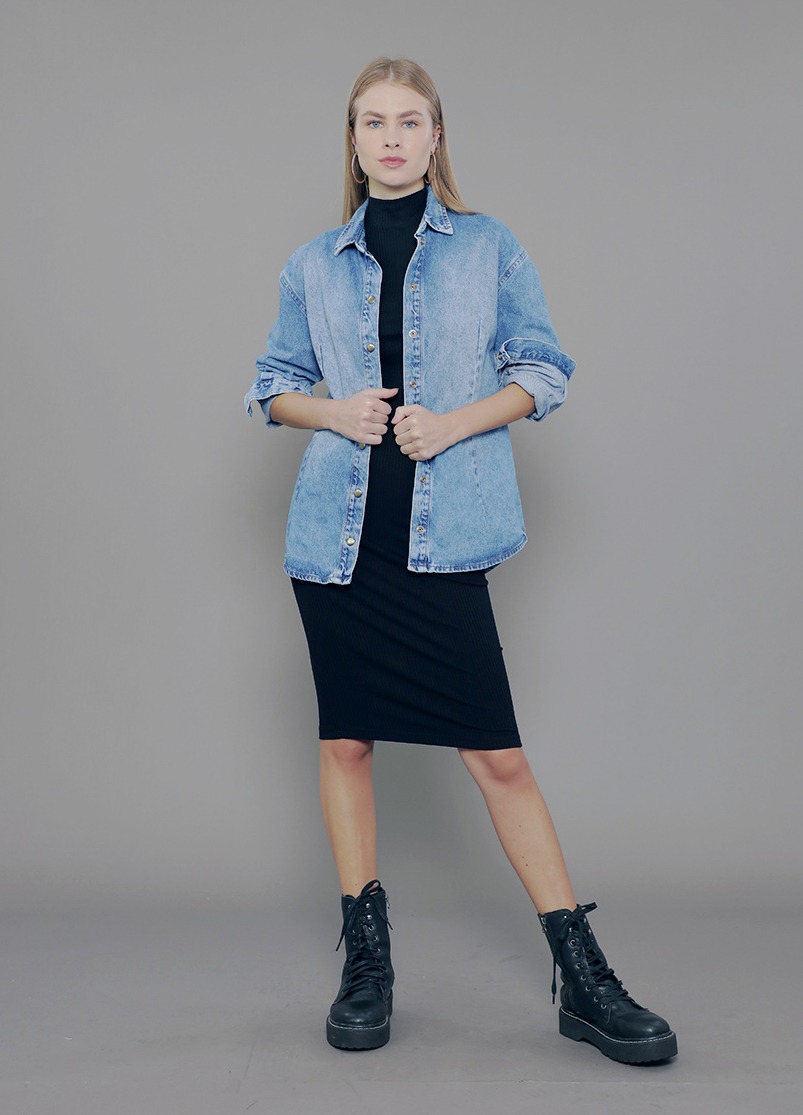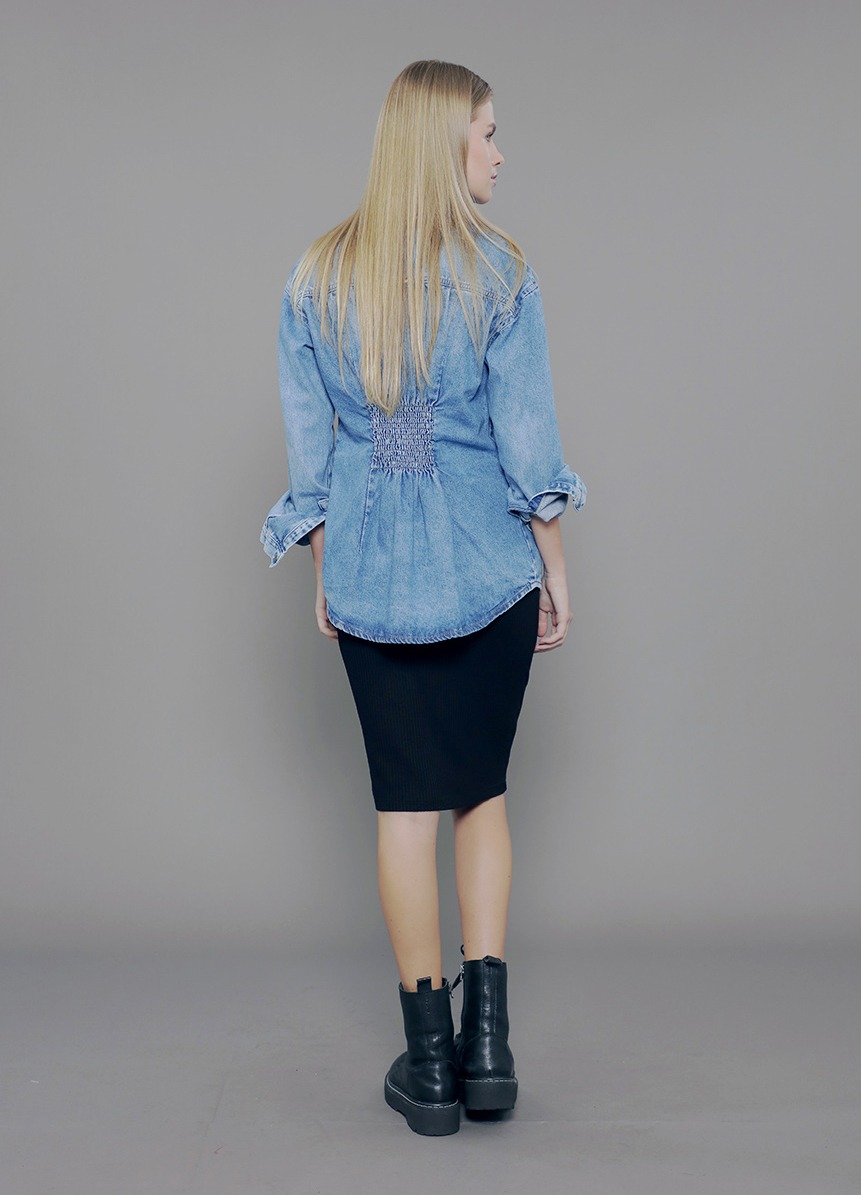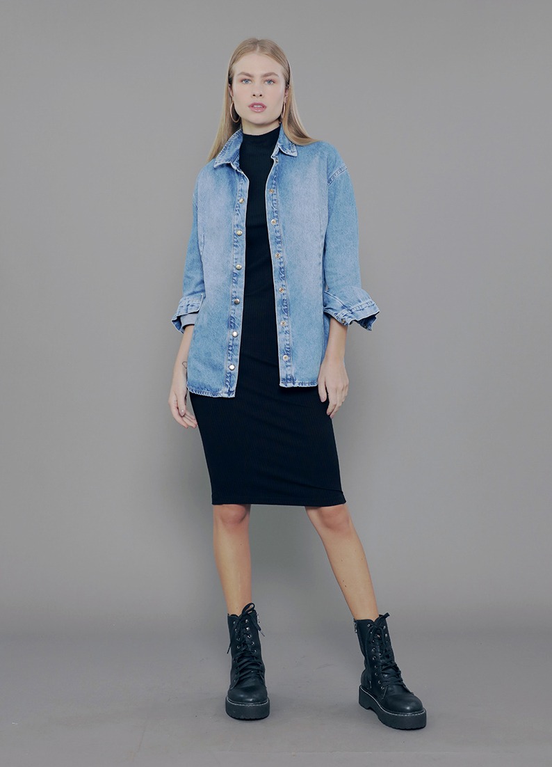 CM.170.0026 Camisa Jeanswear Feminina Slim Manga Longa Com Lastex nas costas em Jeans 100% Algodão Estonado *Tm: P ao GG
