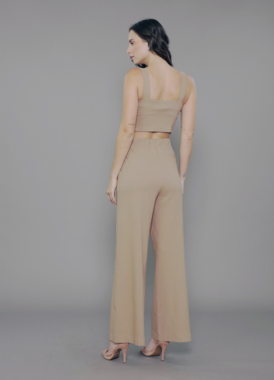 TP.162.0002 Top Malharia Feminino Cropped Alça Média Decote Arredondado Cut Out em Bengaline Misto